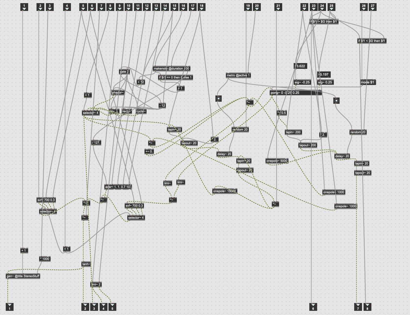Alongside writing for this magazine, I have been known to make the odd bit of music. If you have checked out my Relooped performance in the previous post, you will know that my definition of music is… broad. In this article, I will go into detail about a recent digital modular system that I built with a visual coding language by the name of Max.
